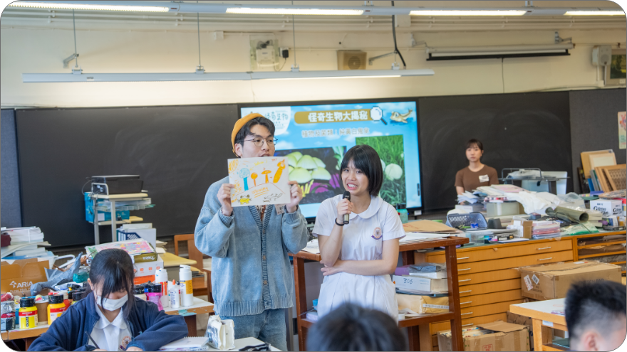如果想了解生物的構造,最好的方法便是動手製作。中小學生除了能在活動中了解到生物多樣性的重要,更可以認識不同的本地怪奇生物,在大專生觀察員設計的互動教學中,學生能了解到生物的外形及習性,從中促進教學相長。學生亦能透過升級再造的方法,製作生物的立體紙雕塑,而他們在製作過程中更能自由發揮創意,創作出專屬自己的怪奇生物。