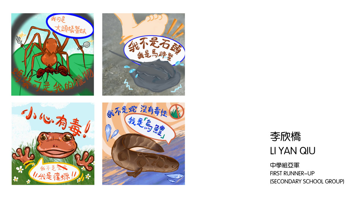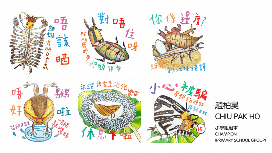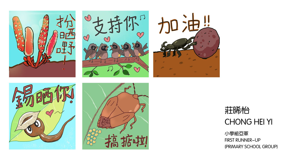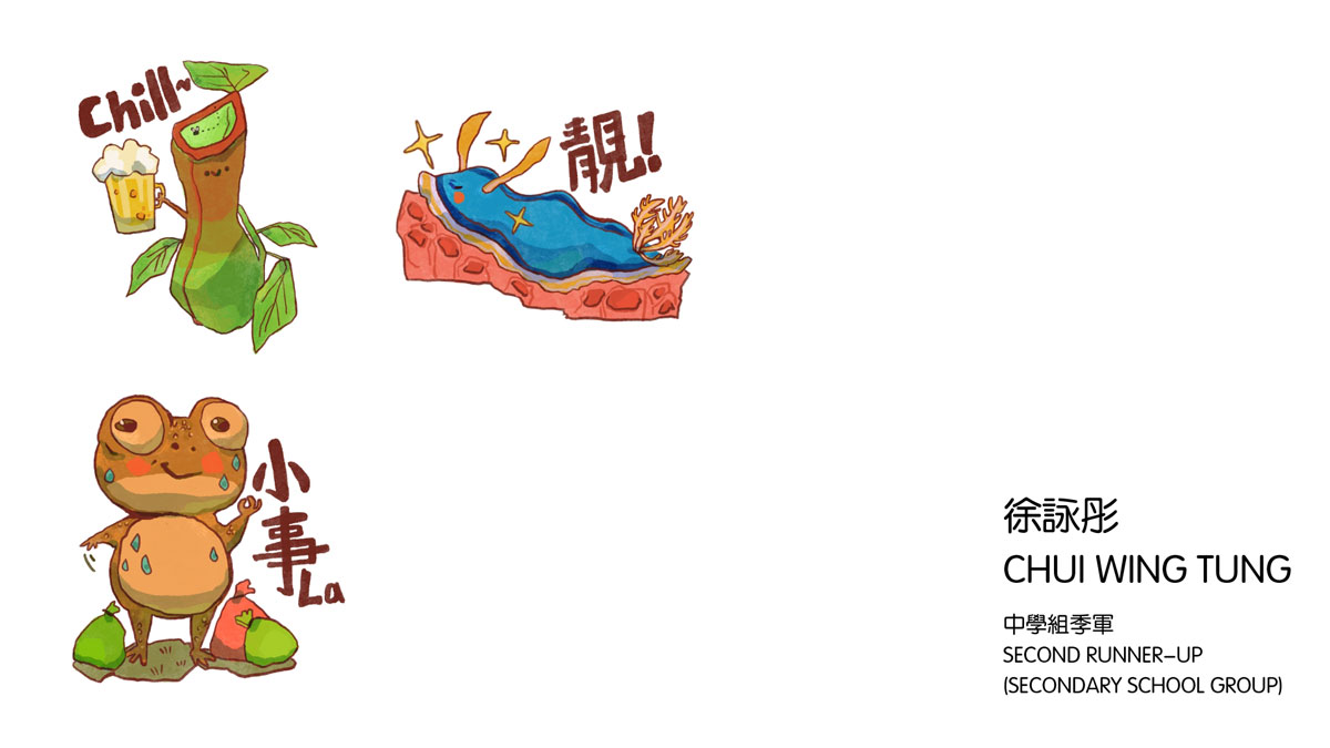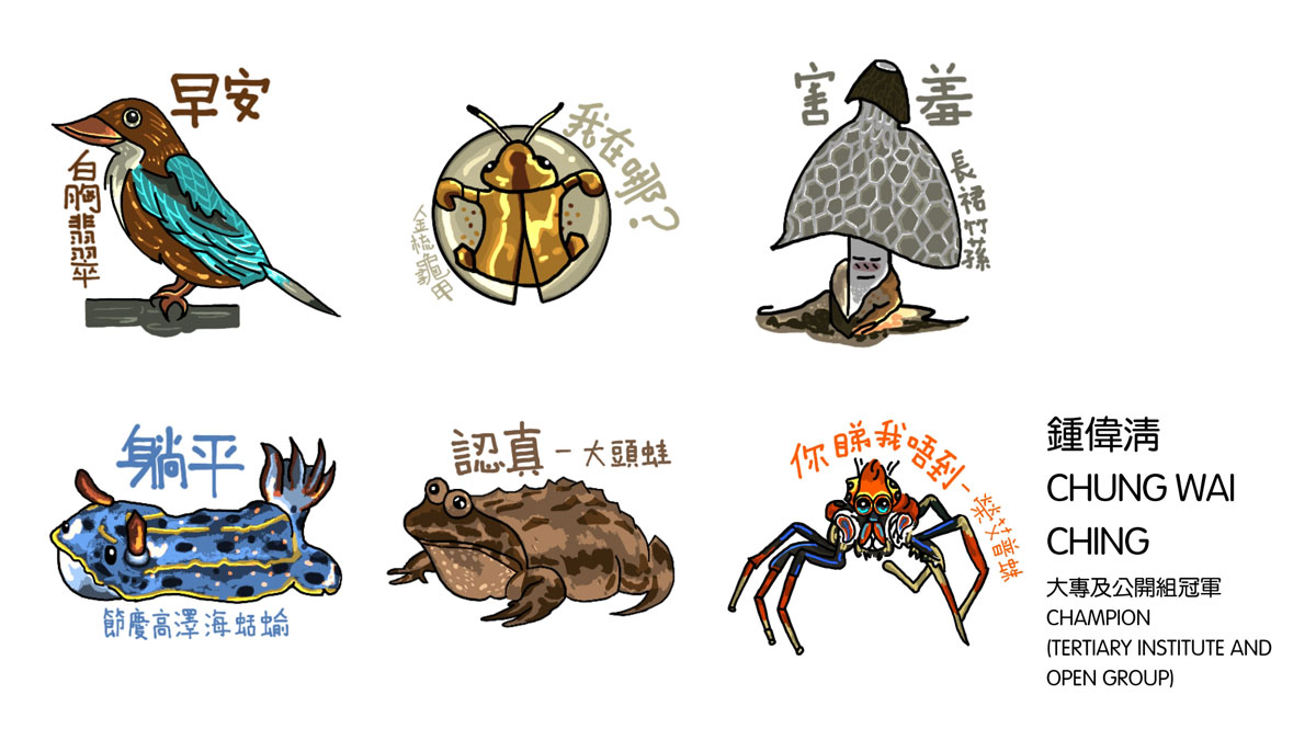 在「『集合吧! 怪奇之友會』WhatsApp貼圖創作比賽」 中,我們鼓勵大家以這些被人忽略、誤解或恐懼的香港特色動物、植物、昆蟲等為主題,創作兼具生物特色及趣味的WhatsApp貼圖,讓大家在聊天的同時,也能與好友分享這些值得讓人欣賞和認識的生物。